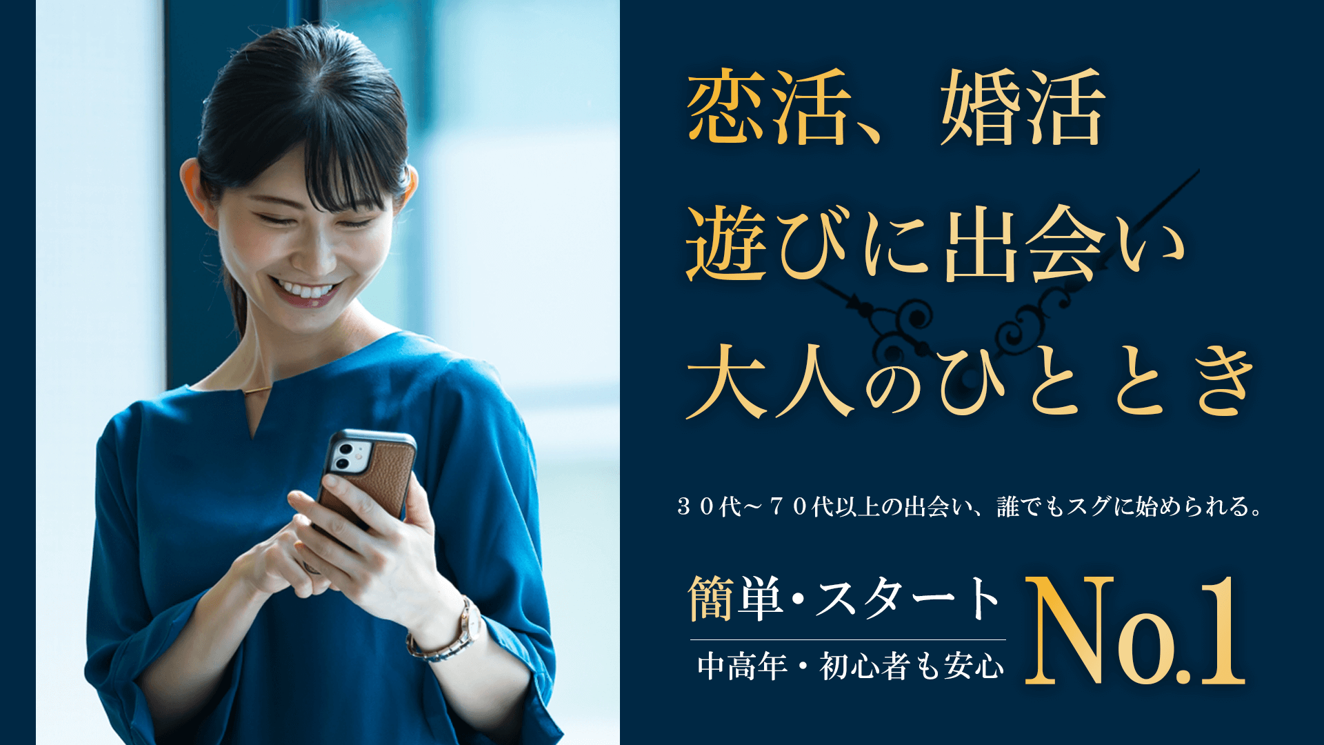 恋活、婚活、再婚活、遊びや趣味のパートナー探しも。一緒に素敵な大人の「ひととき」を過ごすお相手探しをサポートします。登録からお相手探しまではかんたん3ステップで、マッチングアプリが初めてな方でも安心、誰でもすぐに始められます。